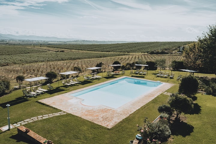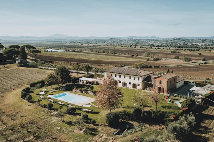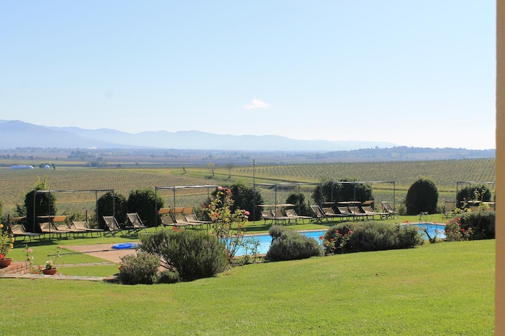 I was born and raised in Rome until the age of 30 and moved to Tuscany in 2003. I had decided to live at the Agriturismo to be there for guests. The choice was right, and guests come back every year. I take care of the front desk, maintenance and cleaning, and breakfasts. In 2008 I had Pamela as a guest and since 2008 we have not left. From this Amore, our Daughter Lavinia was born. Then there's Diva, our Labrador.