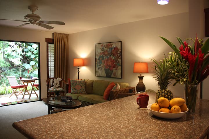 Relax in tropical garden near Poipu beaches