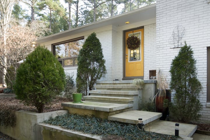 Plenty of outdoor space. Unique location on GRAVEL ROAD that feels like the country but is CLOSE TO EVERYTHING and literally only a few minutes away from Meadowmont, FRIDAY CENTER, UNC, and I40 (to Southpoint, Durham, RTP). Woods and a pond create a feeling of natural solitude; but note that the gravel road can have potholes and be dusty at times if you are very protective of your car.