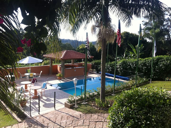 The property is all fenced and the gate has remote control. Hospede receives a remote control and key to your suite.