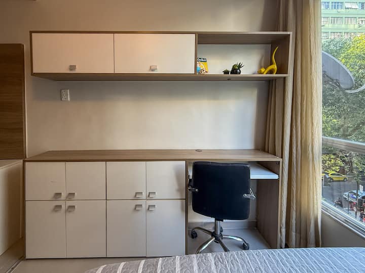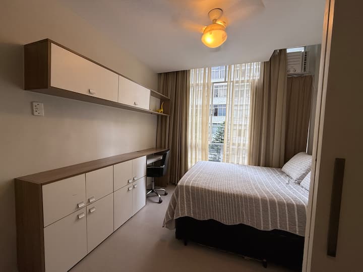 I am Camila, I am 32 years old, I used to live in the mini home in Copa and I moved to expand family into larger space. Alugo this AP, which I have a lot of affection here on Airbnb and I also make use of it when there is space in the schedule.