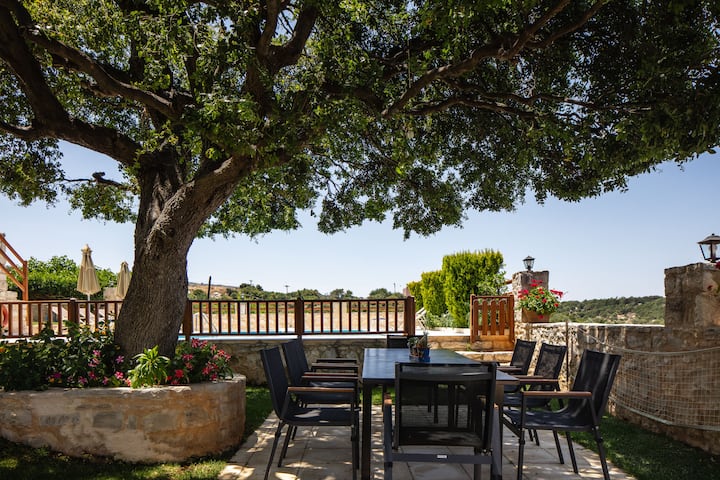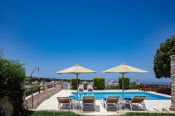 Built on the highest spot of the village, it offers breathtaking views on the Cretan Sea, Mountain 'Psiloritis' and the surrounding area. Private but not remote, Villa Eleftherna is next to the village square, where you can find traditional taverns, cafes and a mini-market.