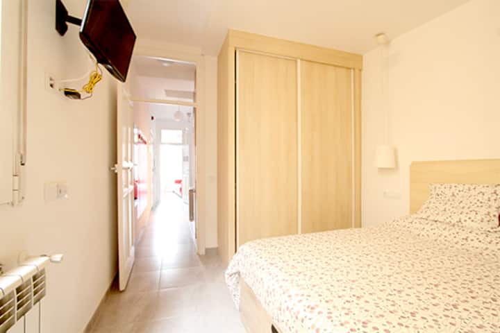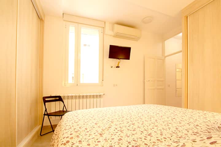 The master bedroom boasts a spacious wardrobe and a wall-mounted TV to enhance your comfort. The apartment also features two air-conditioning units—one in the living room, which has a sofa bed that accommodates two additional guests, and the other in the master bedroom. WiFi is available throughout the apartment, along with a heating system to keep you comfortable during Madrid's cooler months.