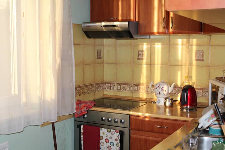 • Eating area: Please use the kithen for eating and cooking. All the cutlery and dishes are at your disposal. Except for salt/peper, pls. use your food products.
