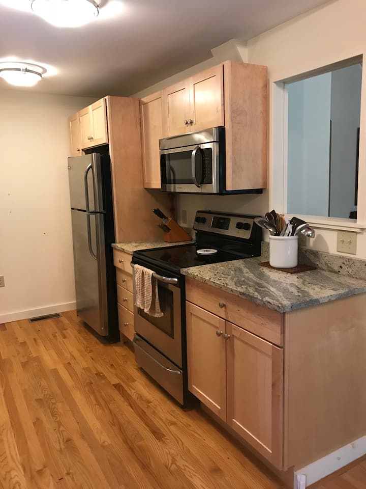 The kitchen is recently remodeled, with marble countertops and new stainless appliances. Fully stocked with dishes, pots & pans, baking supplies and staple foods, spices and condiments. Microwave, electric smooth-top stove, dishwasher, hot water kettle, and toaster. Dining table seats 6-8, or up to 10 with extra leaf.