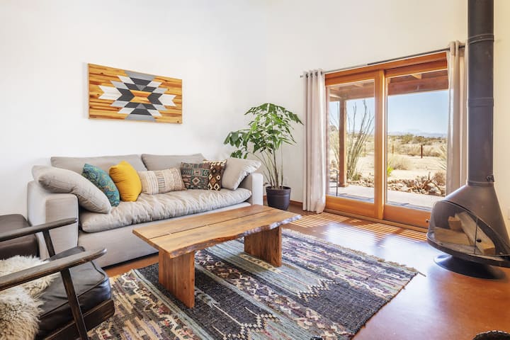 Experience the ultimate escape at MoonView Modern, a sanctuary in the Joshua Tree hills born from the Mojave Rock Ranch legacy. This architectural gem blends modern luxury with eclectic "JT Style," creating a healing space for stargazing and creative rest. Perched high for total privacy and unrivaled night skies, you’re steps from desert wildlife and minutes from the National Park. Unplug, breathe, and find your inspiration in this tranquil retreat where high design meets desert soul.