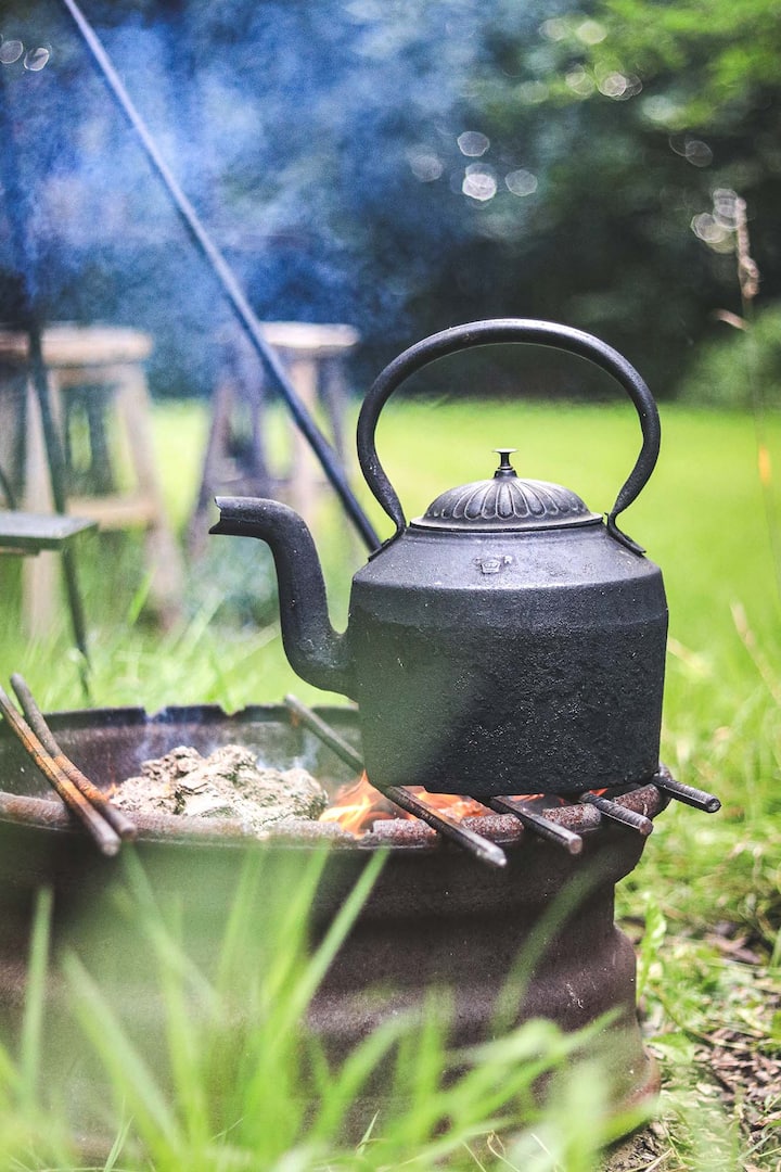 In case of wet weather, there is a two-burner gas camping stove with a grill in the woodland kitchen. Also good for boiling the kettle without having to wait for the campfire to get going!