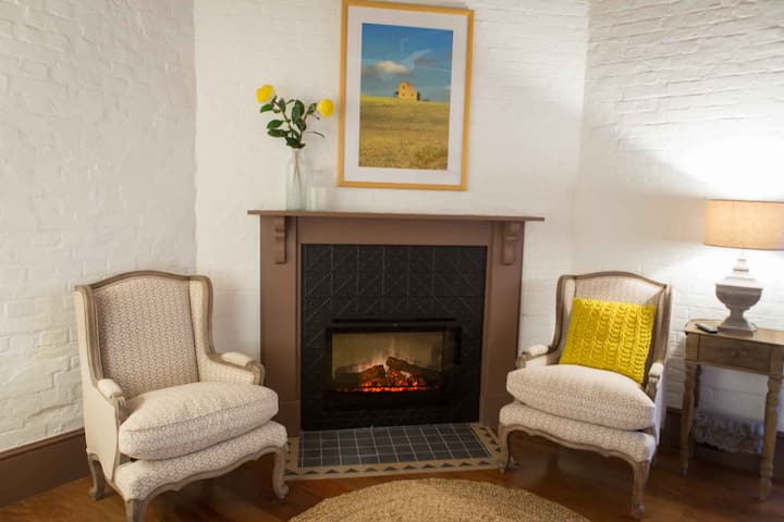 Four suites have been beautifully restored to provide elegant comforts in the same space where convicts and farmhands worked and toiled over 150 years ago. Each suite allows guests to enjoy the same views of sweeping hillsides and colonial buildings in air conditioned comfort. For those cool evenings, at the push of a button, a restored fireplace is available to warm the sitting room.