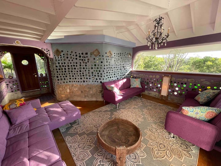 We are surrounded by natural beauty and our bohemian charm will sure to inspire you.The Surf Song Yurt is super private with a deck and a view to the east and Limestone beach surf song. The Yurt has been rebuilt using bottle bricks.