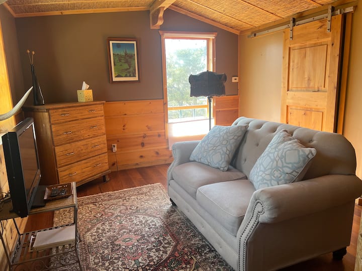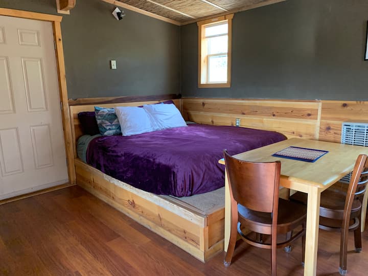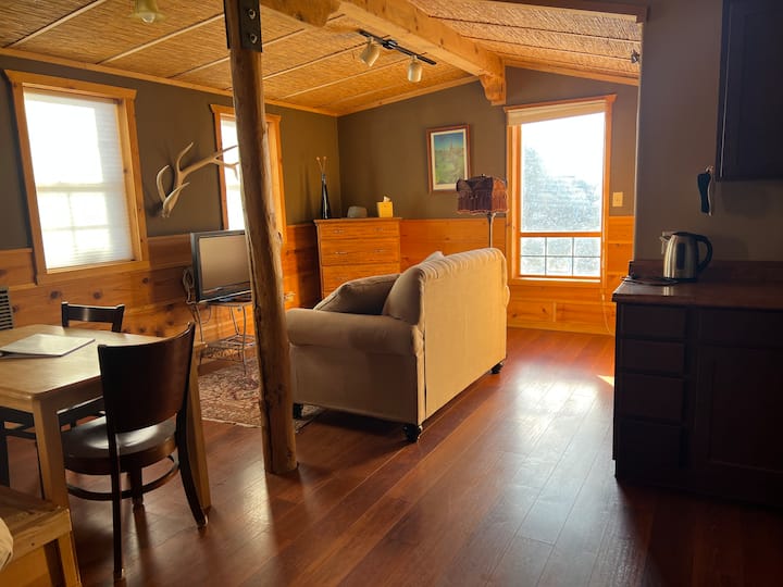 Welcome to the Birdhouse! This studio apartment has a plush king sized bed, perfectly positioned for mountain viewing. Extra down comforters and soft blankets are provided.
