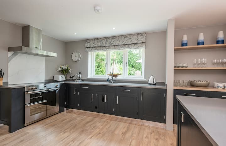 - a high quality, well equipped, dual aspect, open plan kitchen/living/dining room with bifolding doors that open out to both the back and front of the property. An excellent room in which you are able to enjoy a family holiday with everyone in one space.