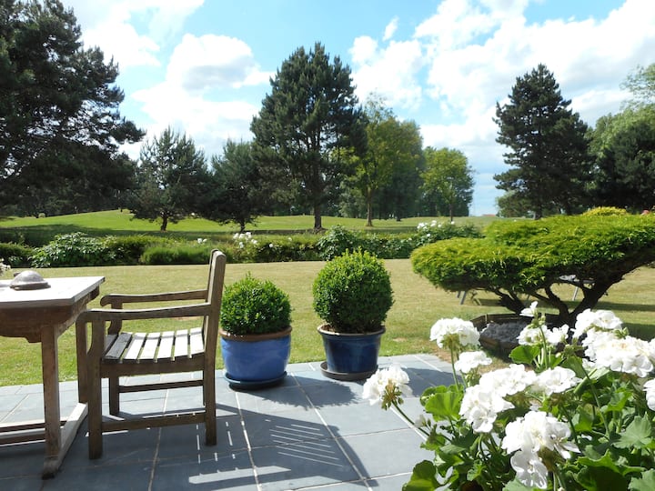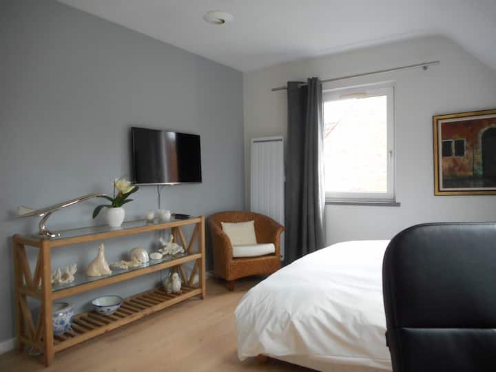 . House, 150 m², two parking spaces, three bedrooms for two people, two bedrooms, 17 m², each bedroom, the TV, a bathroom plus toilet, a shower room. Linens and bath towels provided. Living room sofa TV fireplace fully equipped kitchen. Garden opposite Bondue Strange golf course at number nine. Very quiet. Possibility for golfers to walk to the castle, included, tourist tax,