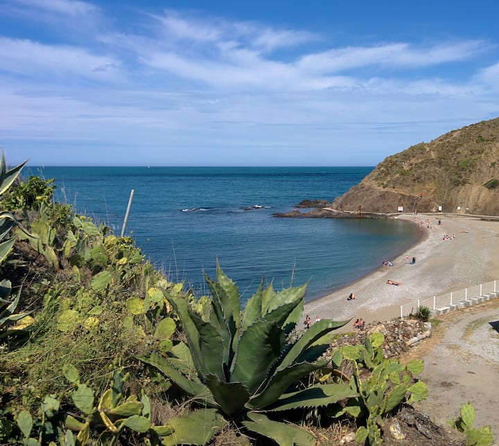 Discover our renovated beach house in 2014 with direct access to the beach on a property in a cove near Collioure. The house is fully equipped, has 2 attic bedrooms and 4 beds.