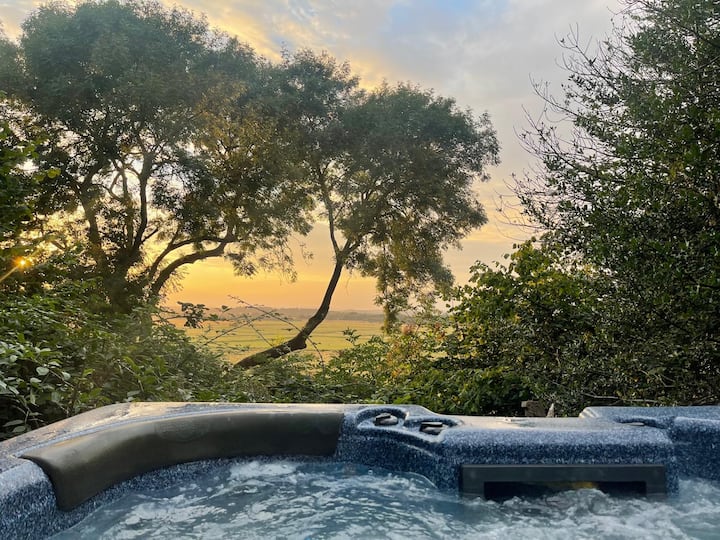 Relax with the rain shower and hot tub.