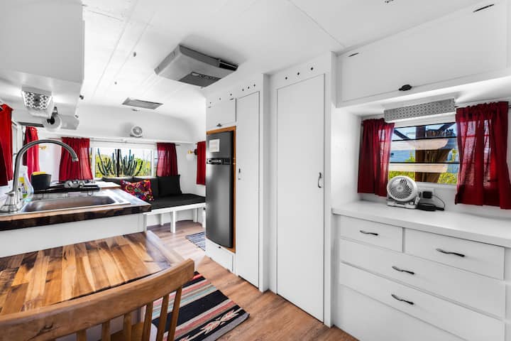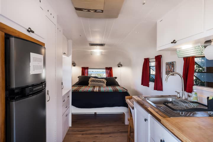 Silver Lining Haven is a classic, newly remodeled 1966 Streamline trailer. She's super comfy with a fun bohemian vibe, and nestled in a pretty patch of desert. A ten minute walk brings you to Playa Los Cerritos, the best swimming beach with the most consistent surf around. While close enough to walk to restaurants, bars, surf, the property feels remote. Catch sunset from the deck, stargaze at night, and wake to the sounds of birds and waves crashing.