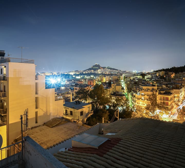Sunny attic near Acropolis, amazing view