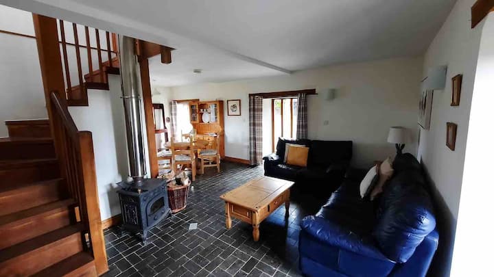 The Granary is a cosy, open-plan cottage with a log burner, on the edge of the farmyard on our peaceful, working farm, along with The Stables holiday cottage, and the main farmhouse.