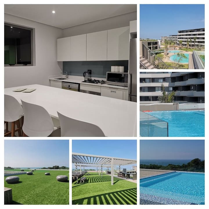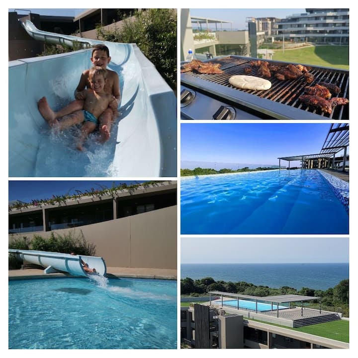 In addition, guests have full access to two rooftop pools overlooking the Sibaya Coastal Forest and Indian Ocean, which includes gas braais (ready for you to braai and cleaned for you!) **## Due to Covid the cumunal braai's have been removed until further notice. We have purchased a beautiful gas braai which you can now use on the balcony of our unit (one of the few!...) ##** , as well as a putting green.