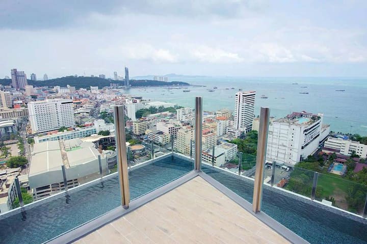 T2 Pattaya the base A building sea view two bedroom suite free infinity pool 3 minutes to the beach family travel preferred