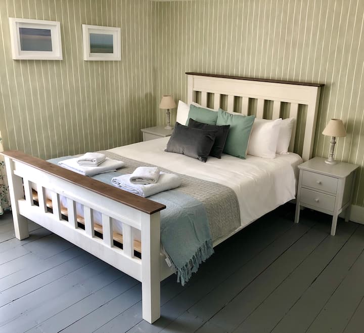 Each bedroom has its own distinct style. All bedrooms have French country cottage style beds and award-winning Eve hybrid mattresses to provide pure comfort and top-to-toe support. Luxurious light weight goose down duvets are provided (that are changed to match the season) as well as both goose down and duck down pillows so you can find that perfect combination of firmness. Finally, hotel quality crisp white linen is used, and fluffy white towels are provided.
