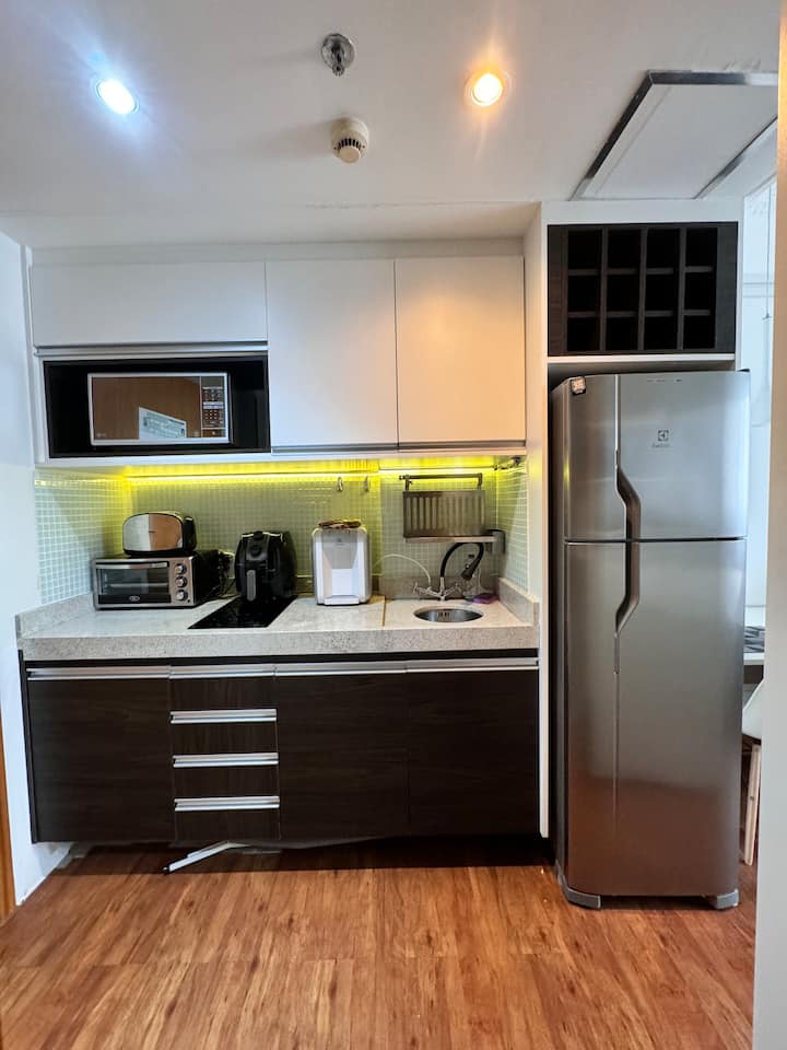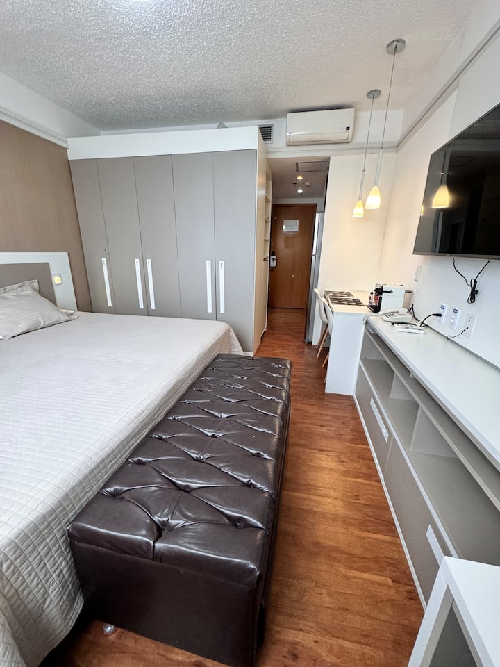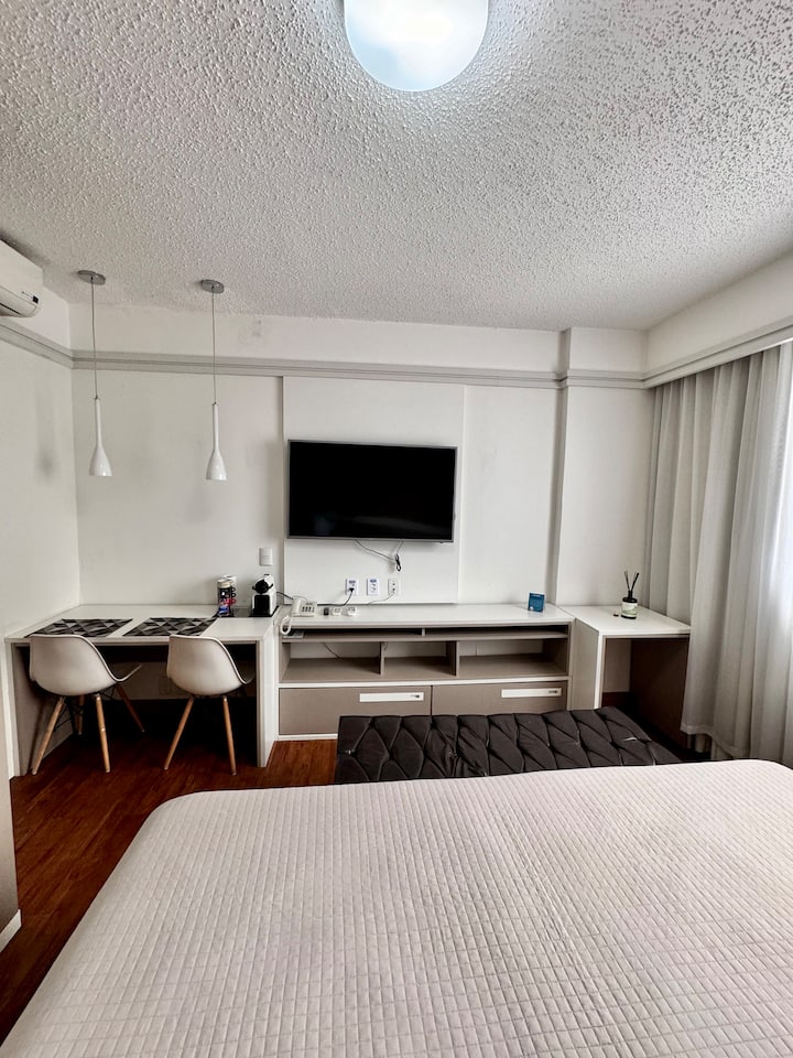 I usually travel for work and only stay the night in the apt. Quiet, enjoy a nice TV with movies and soccer.