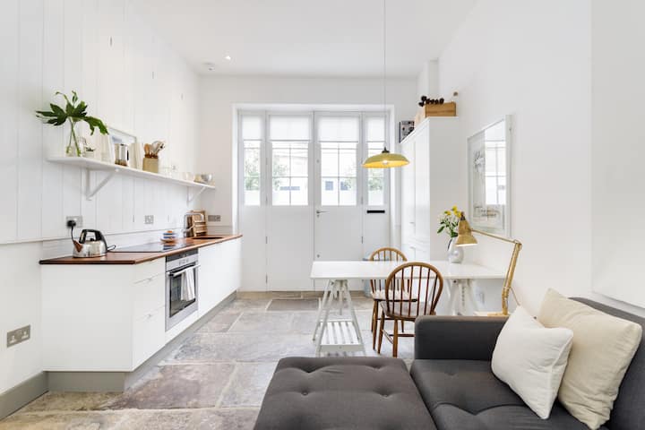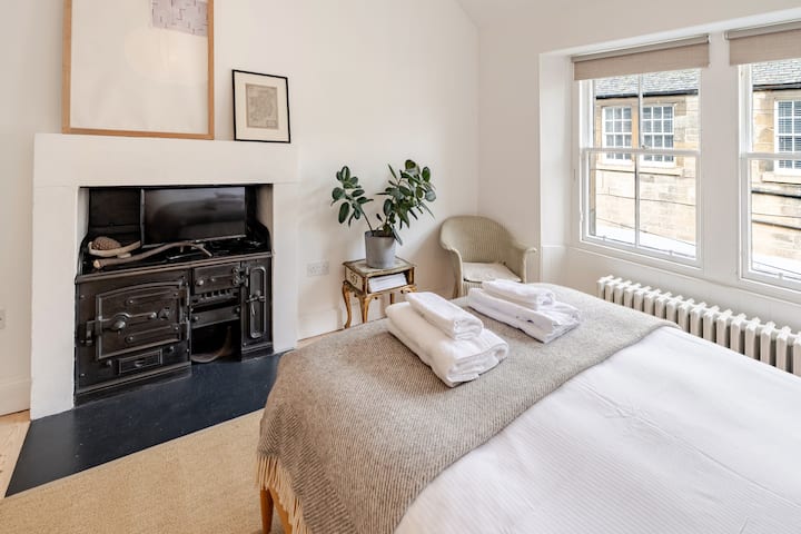 Stay in an architecturally designed, unique Georgian mews house in Stockbridge. Quiet, comfortable and entirely self-contained, the space is filled with natural light, original artworks, wood and stone.