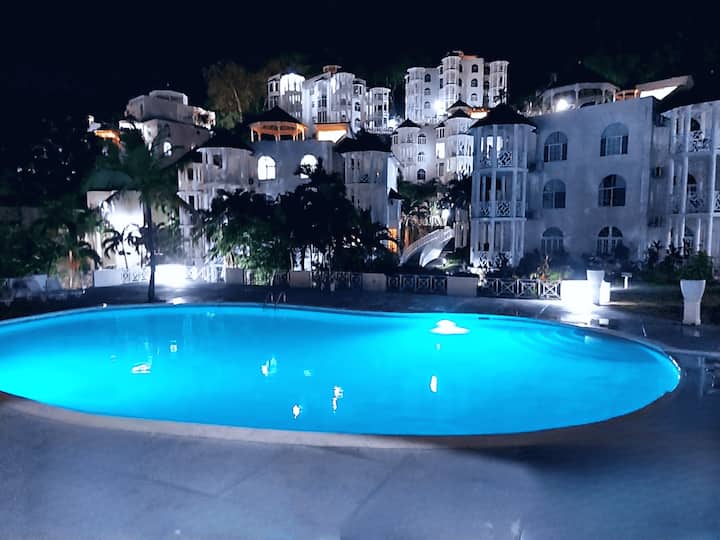 Sky Castles is a destination in itself. Enjoy any or all of the two pools on property. There is a children's pool that is not deep for the young ones, which is located just a few steps away from the apartment. You can go for walks on the property and enjoy the lush gardens and temperate climate. We are perched on a hill so, you will have a stunning view of the resort town of Ocho Rios and see the magnificent cruise ships coming in or docked, which comes in once per week.