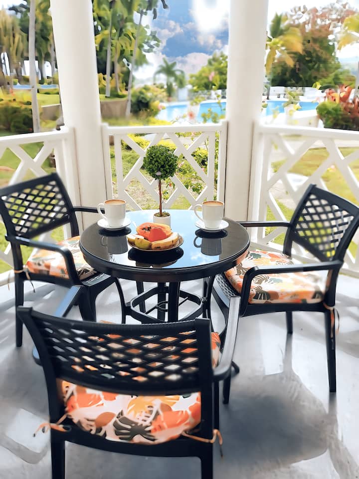 2. They can enjoy breakfast on the patio with a view of the pool and see the Ochi bay in the distance