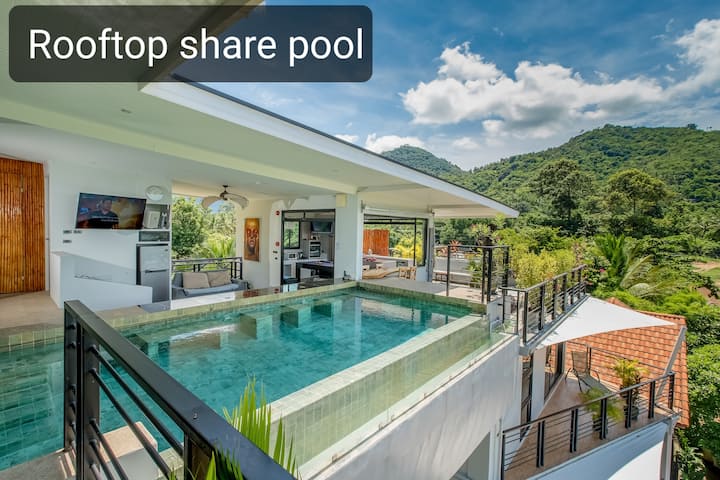 Share the luxury rooftop infinity pool (4th Floor), deck & pool table.