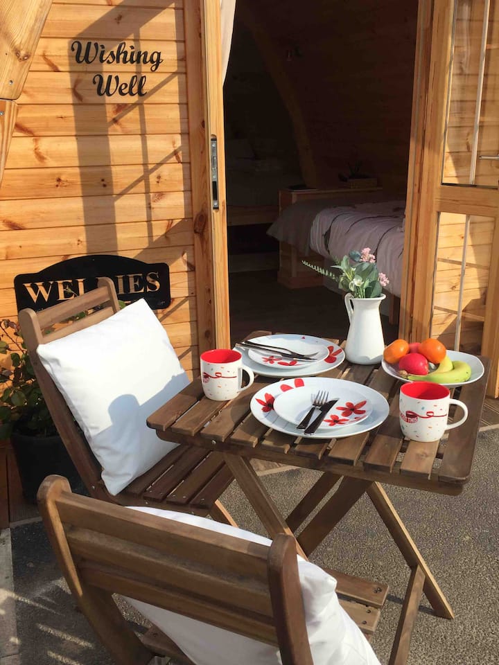Wishing Well Pod. Hot tub £80 pay on arrival.