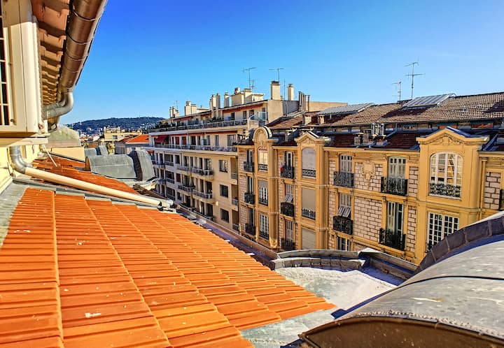You will appreciate the situation of the apartment, perched on the last floor overlooking the roofs of Nice.