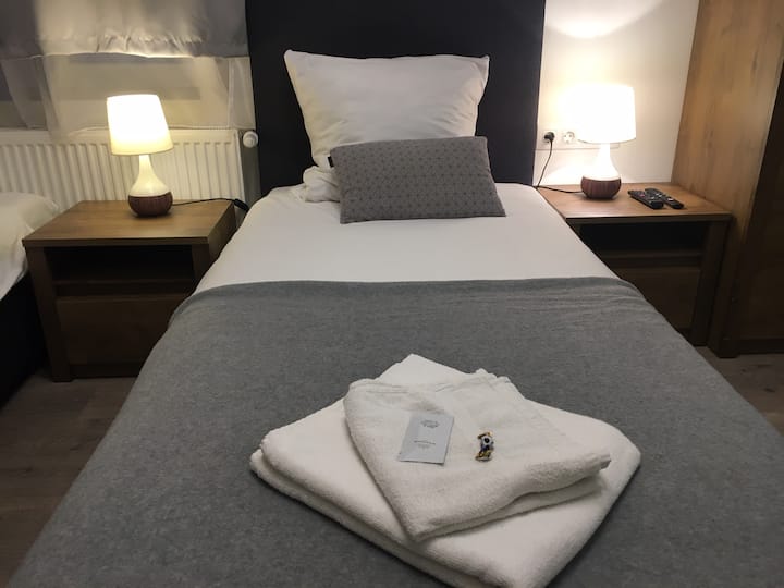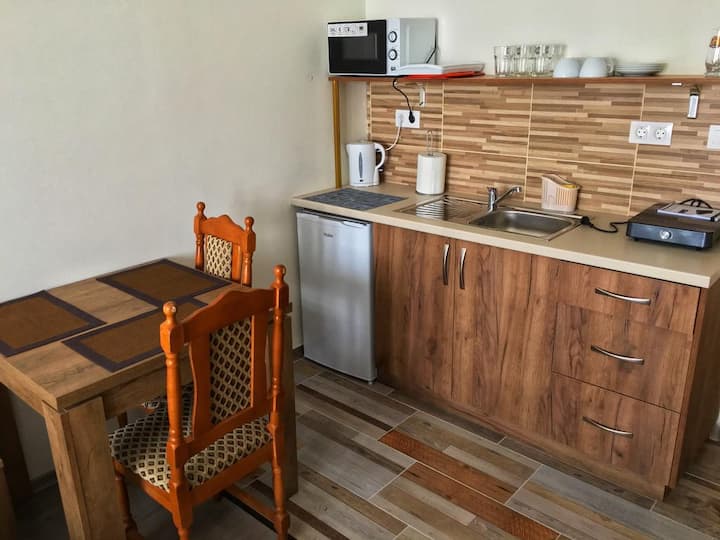 The largest apartment can accommodate up to 5 people. The smallest person can be used for 2 people. For those arriving, we recommend requesting multiple apartments at the same time. Since there are 3 apartments next to each other, it is suitable for accommodating larger (more) families (up to 11 people).