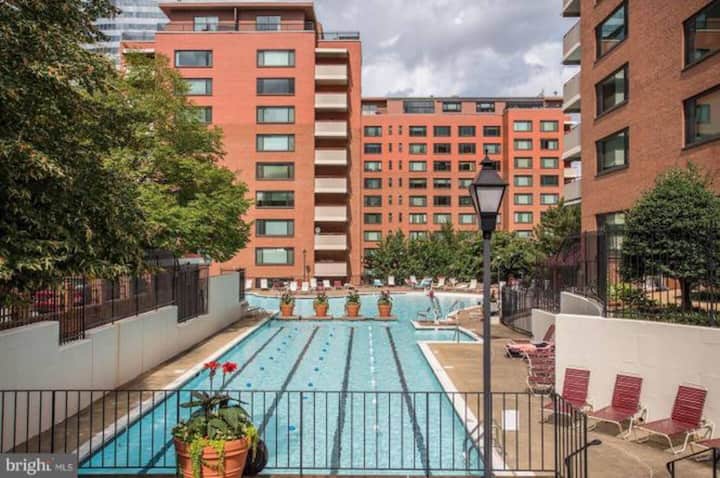 Shared outdoor pool – available seasonally, open specific hours, lap pool
