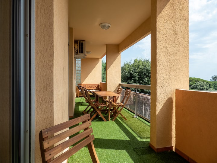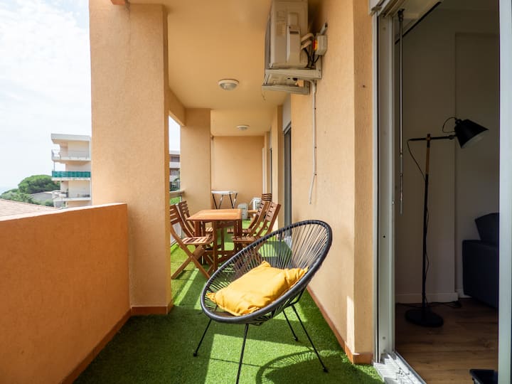 Air-conditioned T3 with garage, balcony and sea view
