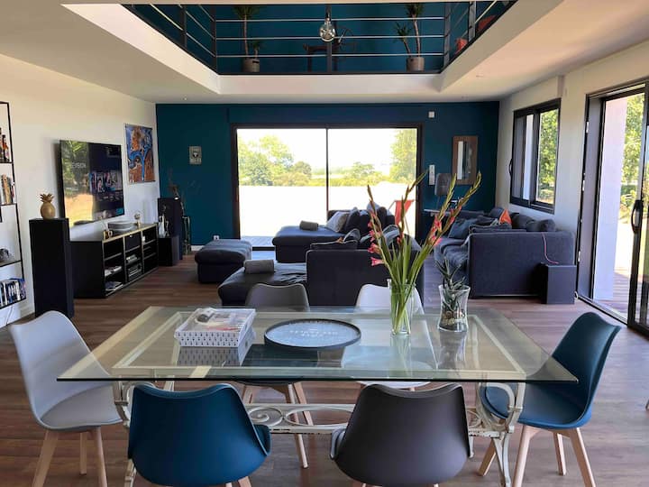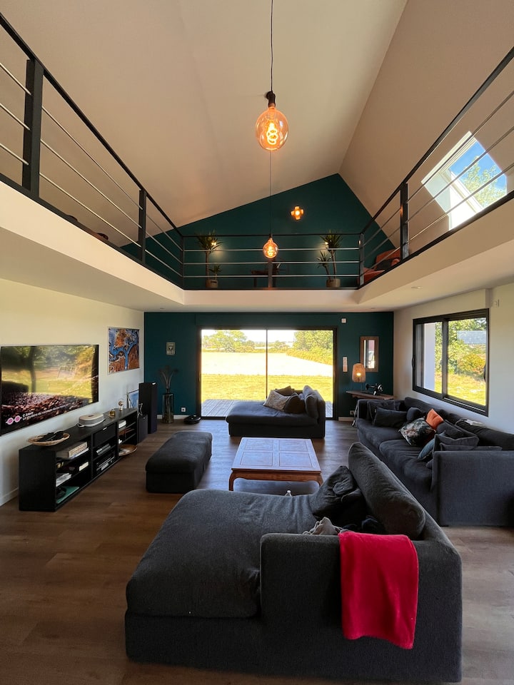 Sea view loft with hot tub and EV charging station