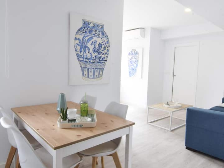 Cozy studio in the center of Malaga. It is fully equipped to accommodate up to four people, so it is perfect for families or couples. It has a bedroom, a double bed, a bathroom, a living room-kitchen and a sofa-bed. In addition, it has all the facilities such as air conditioning in the living room, heating, hair dryer, iron, etc.