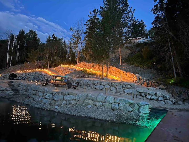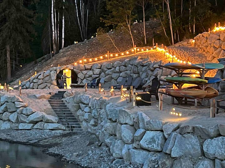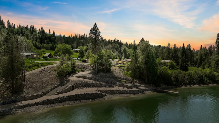 RIVER ACCESS: This home has a sand-topped trail from home to beach, with a 200 foot sandy beach (plastic barrier 4 inches under sand). 55 foot trex-covered pier dock, with LEd-strip lighting and 110v dock plugins, with enough parking for 2-4 boats.The home is 1 mile south of Priest River and about 2 miles above Albeni Dam. The cove (250 front feet) is perfect for families to play on the water with safety and separation from the faster current of the river. There is enough room to relax, try out some new water toys without being in anyone's back yard. There is a beachside campfire (wood supplied by guests). There are multiple lounge areas just above the dock, with lounging chairs for parents to sunbathe while kids play on the dock. Families can use the kayaks, supyaks and paddleboards. There are 12 multiple-sized life vests on hand at the dock.