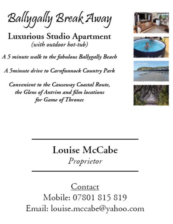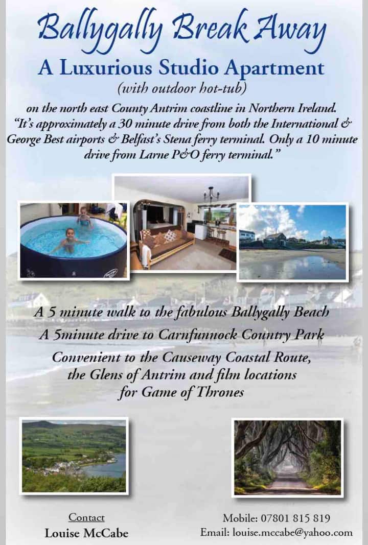 Ballygally Break Away is a ground floor, self-contained apartment with its own front door & French doors to garden. It’s a detached property and we live above it. It’s a 5 min walk to the beach.