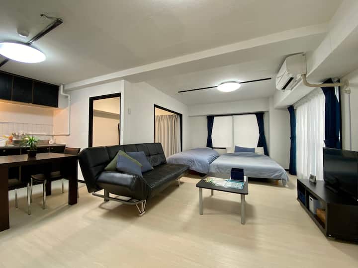 This property is a spacious 2BR mansion for 8 people and most conveniently located in central Sapporo (6min walk from subway & airport bus stop, easy access to sightseeing spots, a few steps away from stores, restaurants & natural hotspring). Take advantage of a whirlpool bath, fast & free pocket wifi & an hourly parking space!