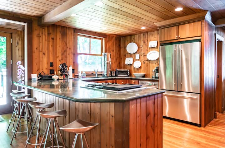 There is an addition on this home that is completely separate and has its own fenced outdoor space. There is a second home on the property that is a vacation rental. They may or may not be rented at the same time. All three units share the private beach space. The units all have separate outdoor areas but beach access is shared. There is plenty of parking. The is a great location for two or three families to get away. Contact me for group pricing on both cottages.