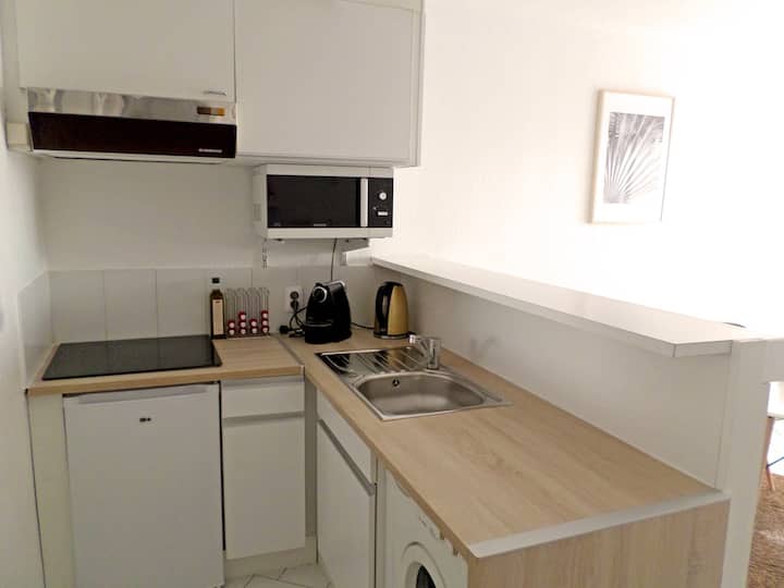☆Nice air-conditioned studio 2 minutes from the beach ☼ + parking