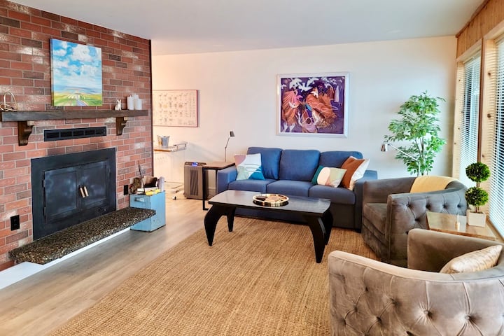 Beautiful Pickering is recently renovated and sleeps 6. Wake up to breathtaking views of Mount Rainier, wander the beach, soak in the hot tub, wrap up in a spa robe, and get cozy by the wood-burning fireplace. Cook on the gas stove, dine on the deck, breathe in the fresh forest air.