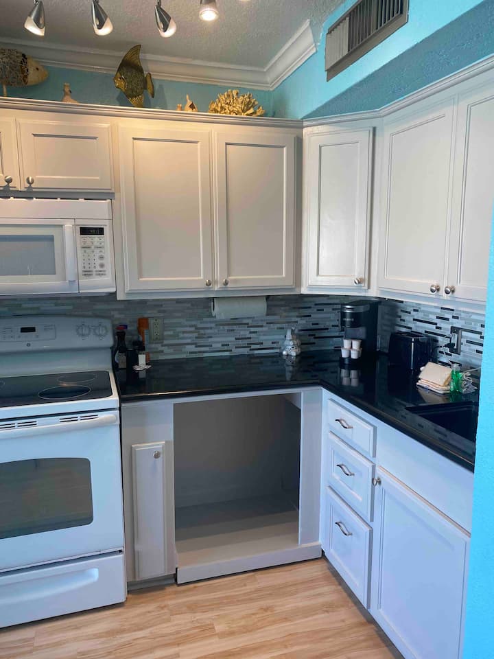 One of our favorite features about our condo is the amazing view from the balcony. Since this condo is on the top floor you will be overlooking the beach and the pool. Enjoy making a nice meal overlooking the ocean!