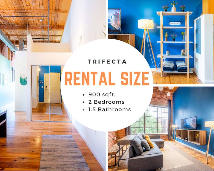 The Trifecta on Morgan Street is a charming 2 bedroom, 2 bath rental in the historical Warehouse District of Downtown Durham that includes a fully stocked kitchen, comfortably furnished rooms, and free parking on-site. It's within walking distance to the convention center and Downtown Durham's best restaurants, pubs, and entertainment.