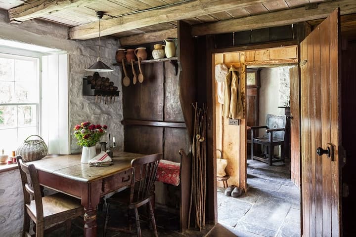 Bryn Eglur is an authentic traditional Welsh Cottage set in a remote, rural location with one of the best preserved Welsh Cottage interiors (built 1755) and furnished with Welsh Country antiques.