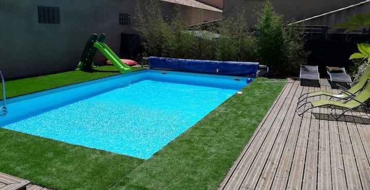 It also offers the opportunity to read the many books I have in the shade of the Olivier, to make various company games on artificial grass.