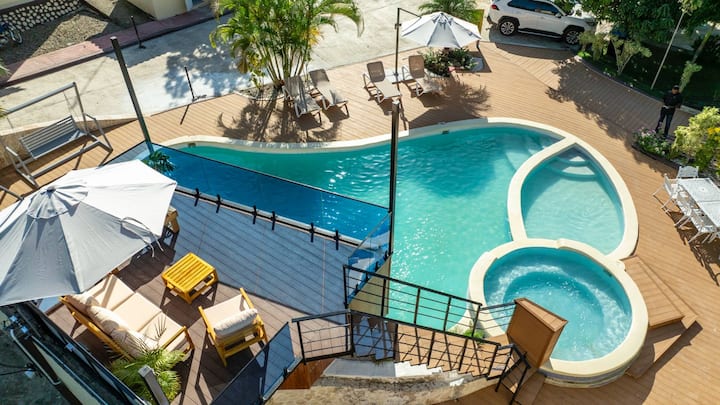 Enjoy a beautiful pool that shines in the sun, a serene river that runs through the landscape, and a jacuzzi that's perfect for leaving stress behind and immersing yourself in calm.