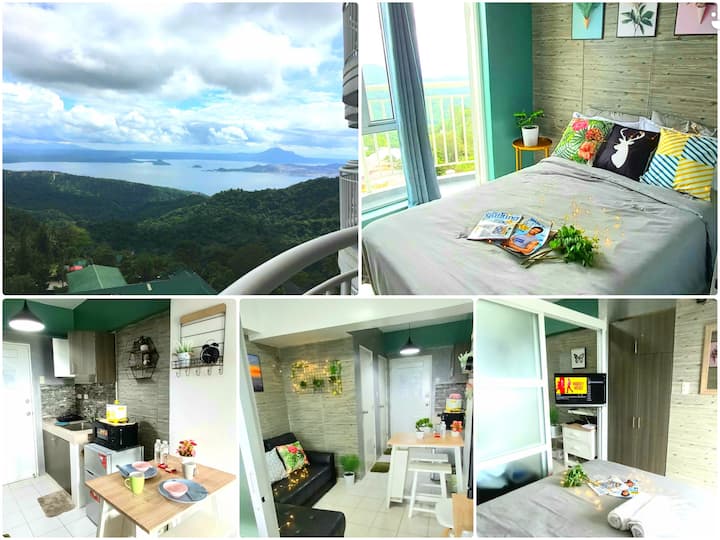 A 25sqm 1BR-type condo unit with balcony located at 19th floor of Tagaytay Prime Residences or Cityland condo near Rotunda and Olivares. This unit has a balcony with View of TAAL lake. Relax and enjoy this room with TV with Netflix and YouTube. You can cook you own meals during your stay.