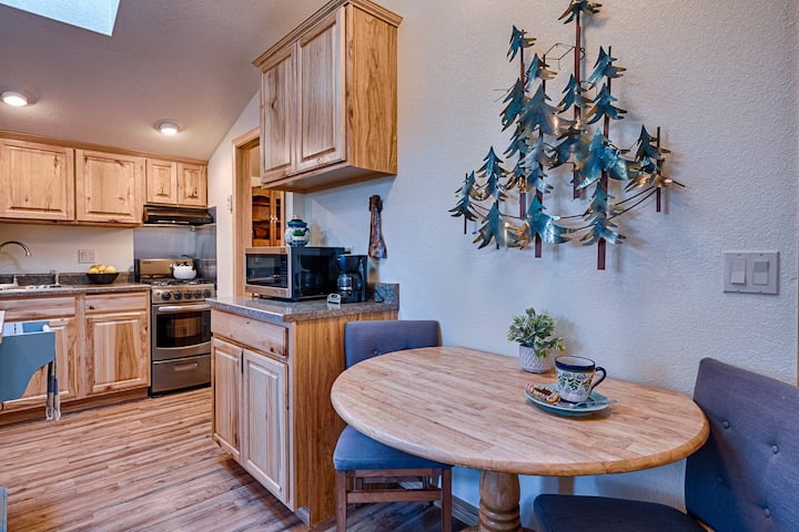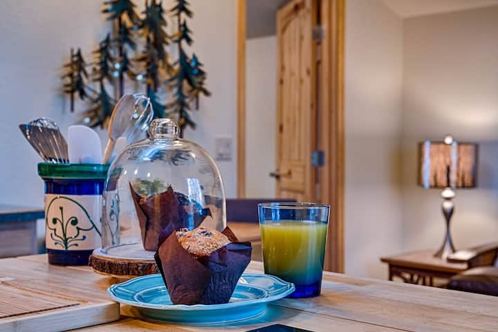 Whether you’re enjoying a fresh cup of coffee before a day of play or unwinding by whipping up dinner in the fully equipped kitchen, you are bound to fall in love with this delightful mountain escape!