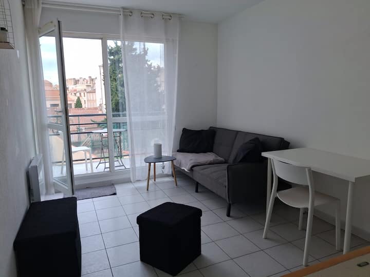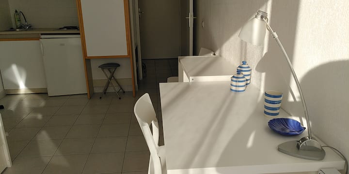 Studio with balcony overlooking wooded garden, 20 minutes to beach